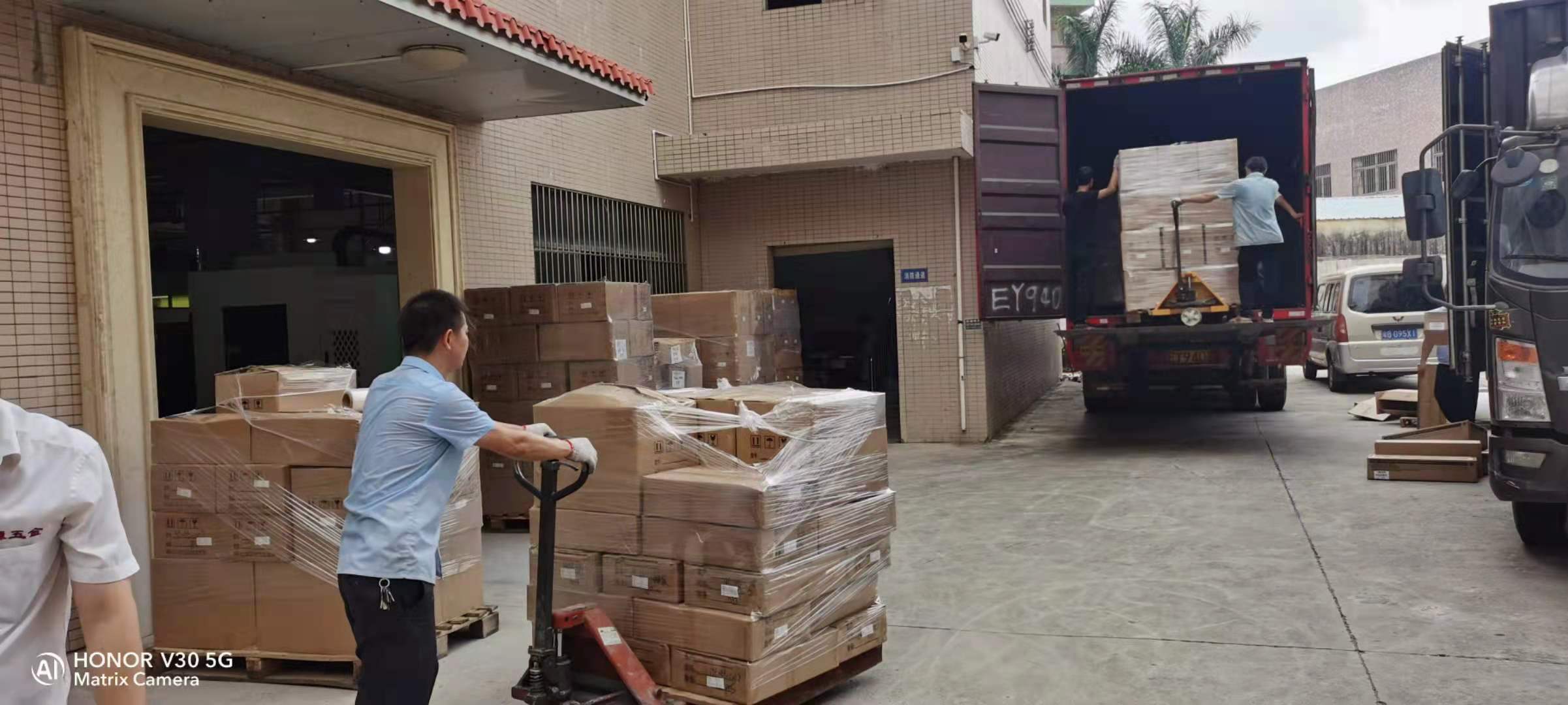 因為降雨,氣溫有所降低,但是小黄片在线视频一線的師傅因為繁重的發貨量,汗珠順著他們的臉頰不停地往下掉,但是他們依然不辭辛苦地輾轉於庫房與貨車之間。
